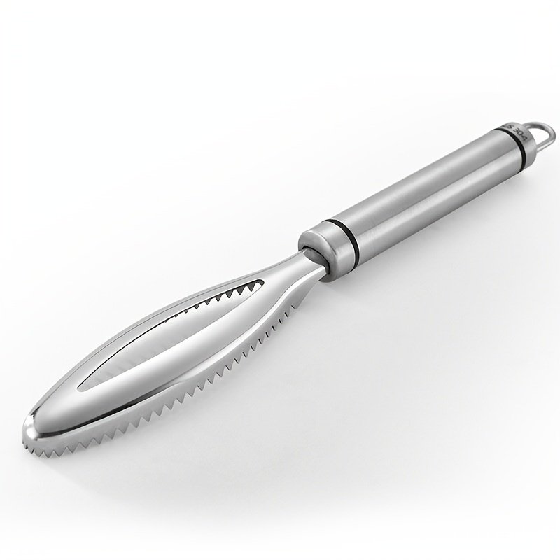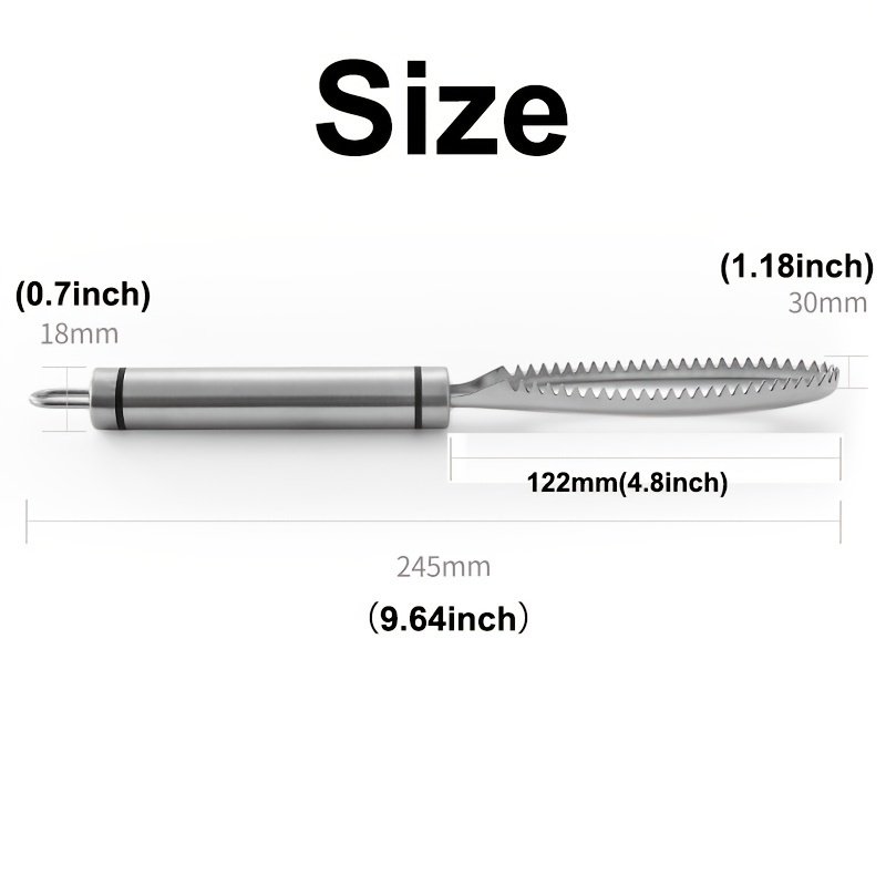 Material: 304 Stainless Steel Size: 24.5*3.2CM/9.65*1.26in Weight: 62g Package Include: 1 * Fish Scale