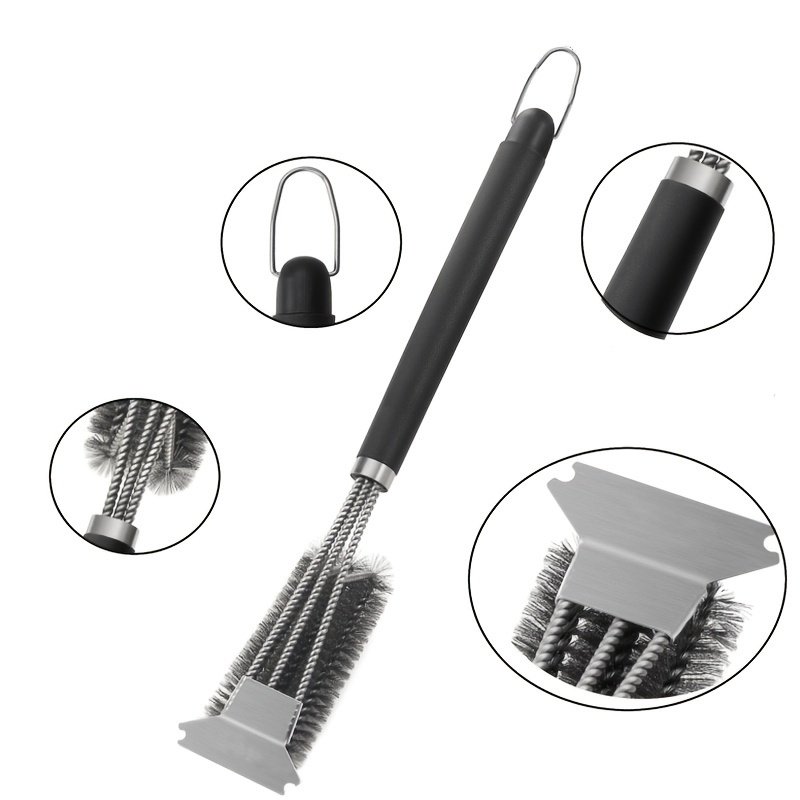 Home > 1pc Stainless Steel Grill Brushes For BBQ; Cleaning Brush With Scraper For Grill; Kitchen Accessories; Cleaning & Maintenance Tools