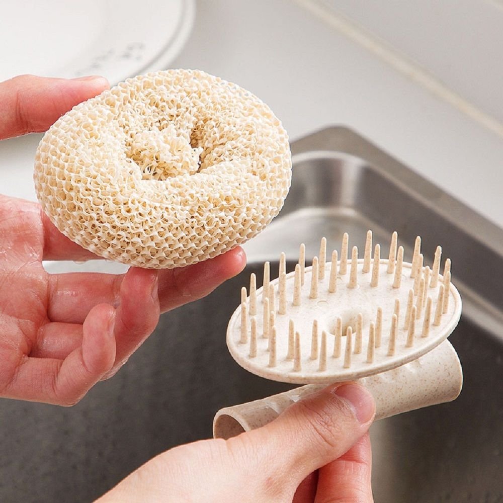 Home > Bamboo Fiber Kitchen Cleaning Brush with Handle Magic Washing Pot Brush Sink Dish Cleaner Household Cleaning Tool Esg17392