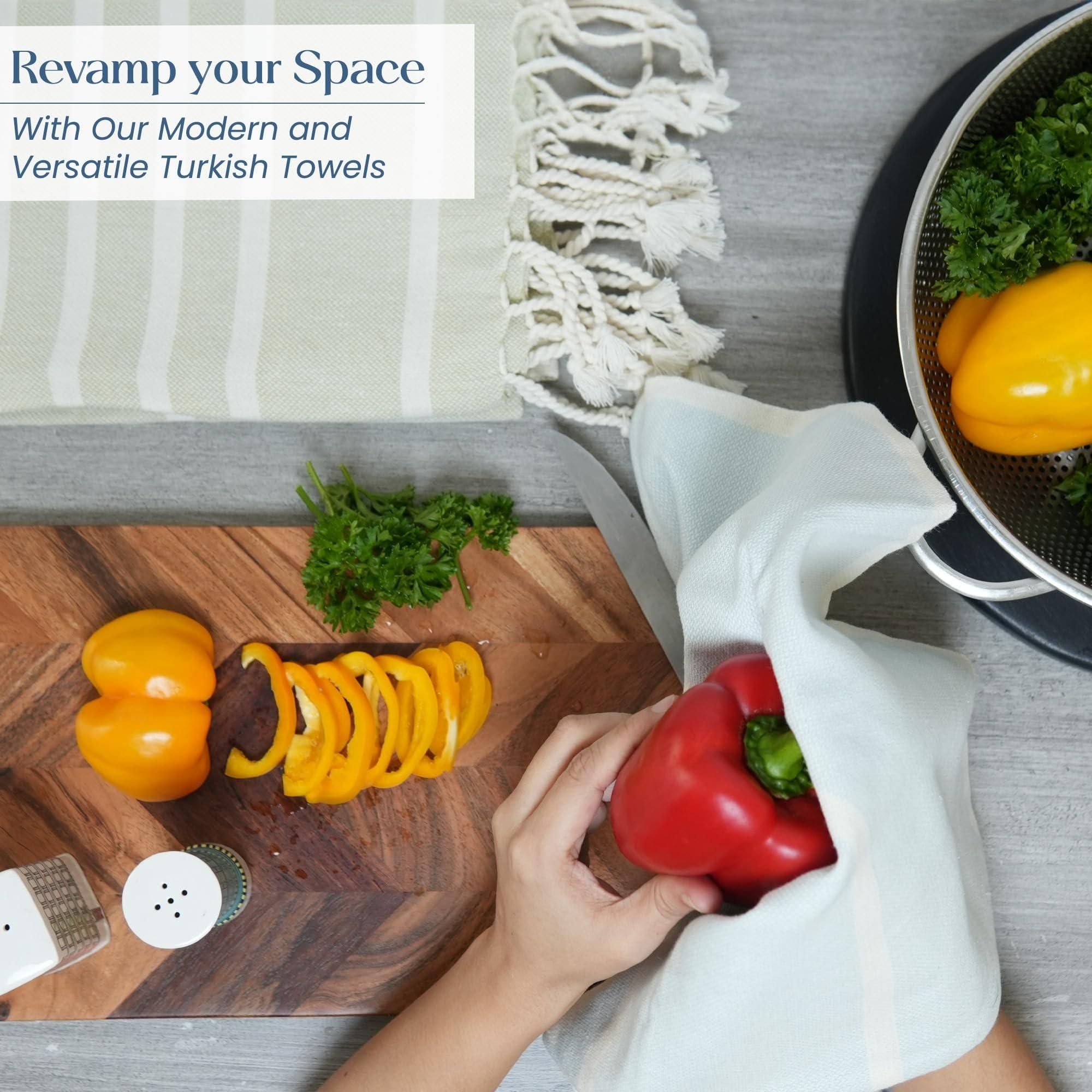 2.HANDY DISH TOWEL: Indulge in luxury with our dish towels, or dishcloths for kitchen made of recycled cotton, featuring 190 GSM yarn-dyed fabric , making it lightweight. With compact weaving, these 28"x18" towels feature a corner hanging loop to add charm.