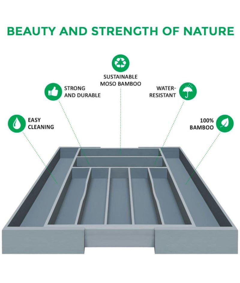 3.The drawer organizer promises to last a lifetime as it is made of all-natural bamboo – secure and durable. The drawer organizer is water-resistant and won’t absorb odors and stains! Excellent usability at hand!