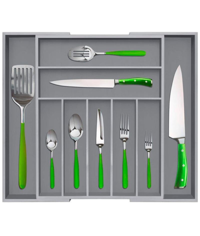 5.The various compartments provide optimal space for holding teaspoons, soup spoons, forks, knives, and various serving pieces, as well as cooking utensils and tools like tongs, can openers, and food thermometers.