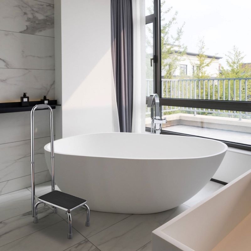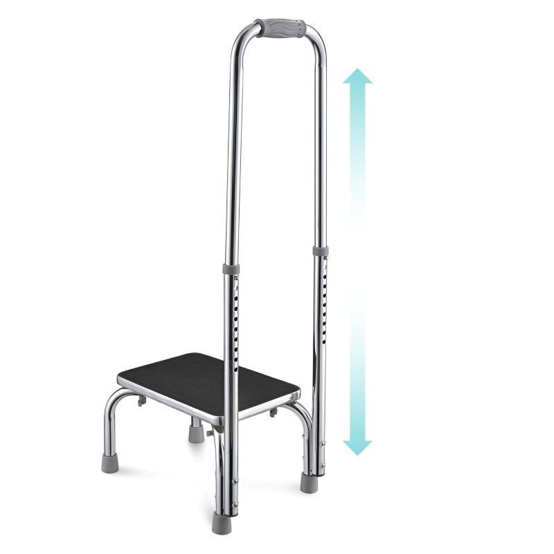 The step stool with a handrail is safe and convenient, helping you safely access high beds, bathtubs or showers, vehicles, and hard-to-reach cabinets.