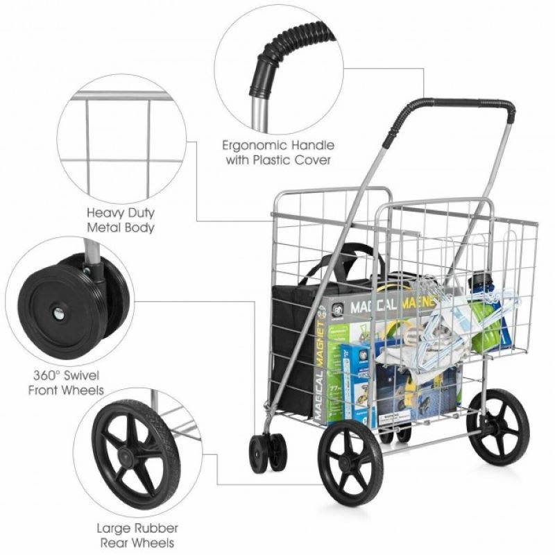 Commercial Household Essentials Heavy Duty Folding Utility Shopping Double Cart