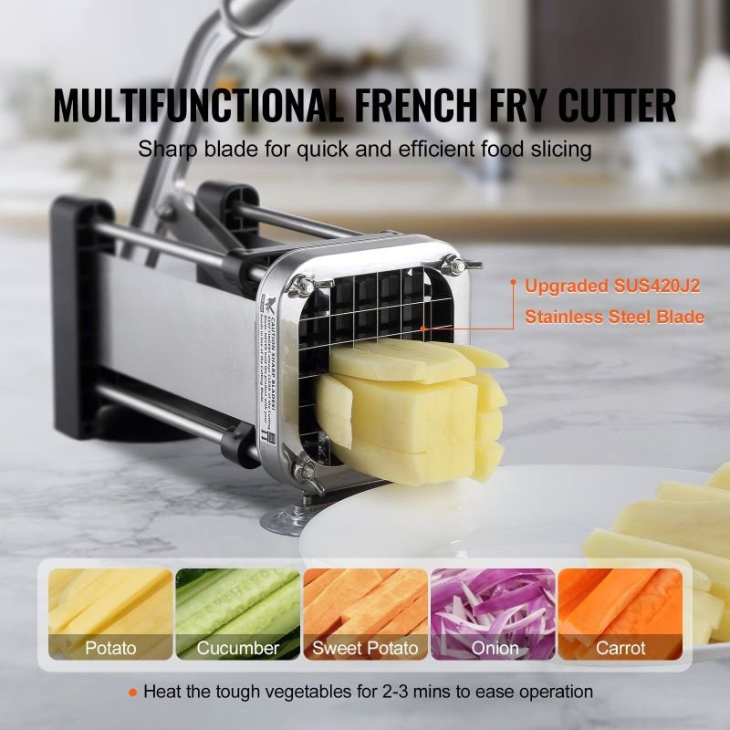 1.The french fry cutter utilizes upgraded food-grade 420J2 stainless steel blades.