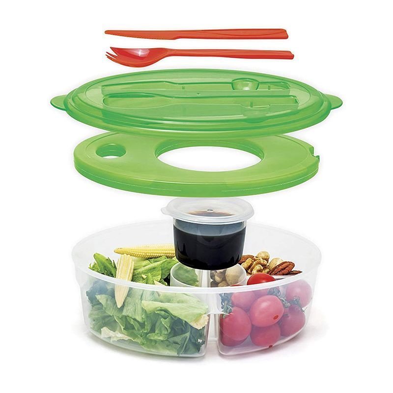 Inner compartments keep ingredients separated to prevent soggy salads.