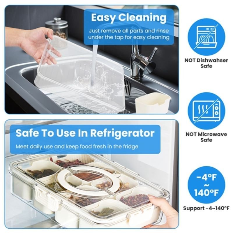 Note: The food container is NOT dishwasher safe and microwave safe. High temperature over 140℉ may cause deformation.